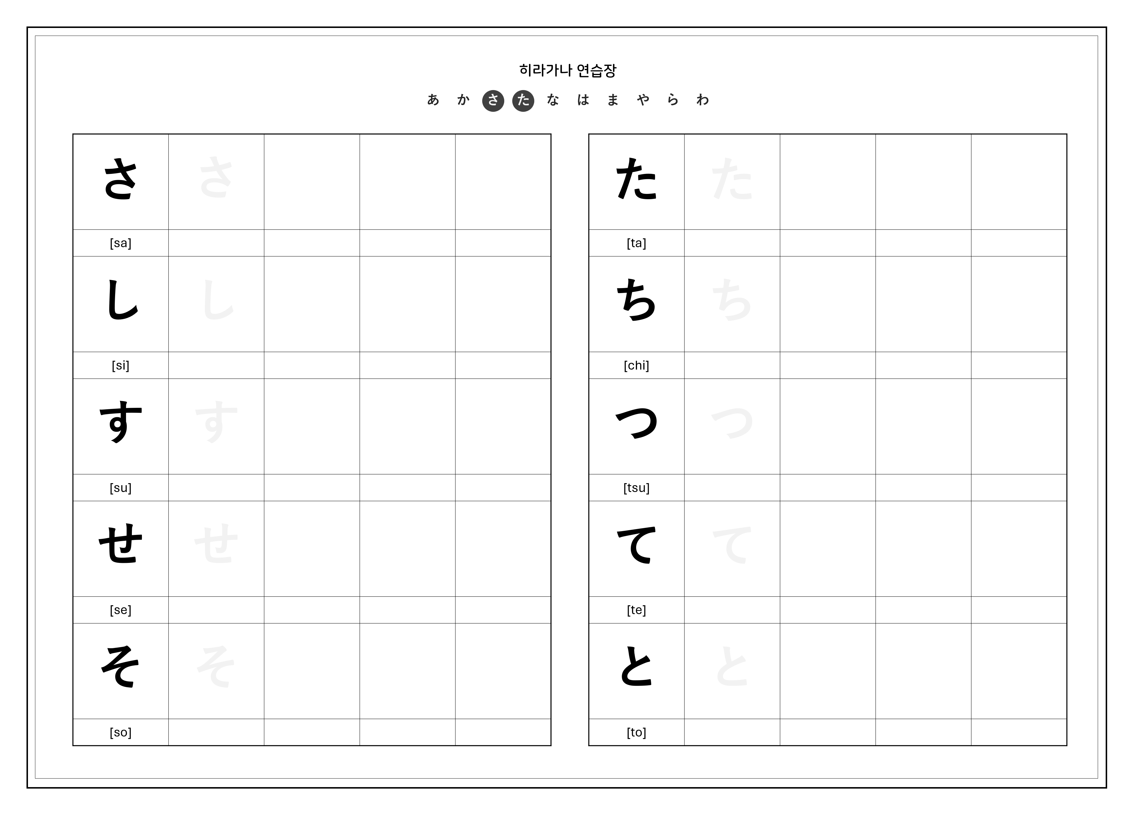 히라가나 쓰기 연습지를 준비했어요 😊
